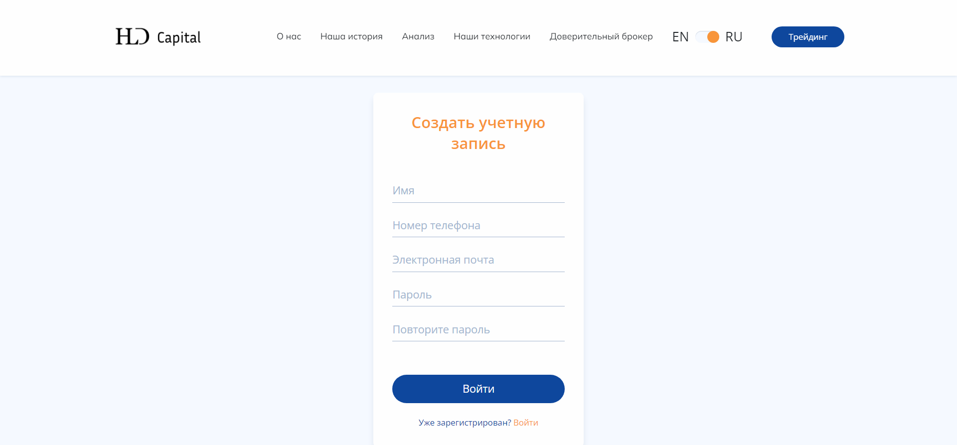 Брокер Capital HLD (capital-hld.com), отзывы о скам-проекте 2023, схема обмана. Как вывести деньги? Capital HLD предлагает своим клиентам торговлю бинарными опционами. О брокере практически ничего неизвестно, при переходе на сайт открывается форма регистрации, разделы недоступны. Сведений о лицензиях …